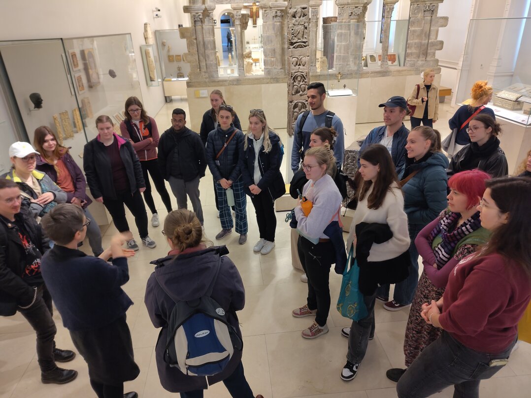 In London stand eine exklusive Kuratorinnen-Führung durch die Medieval Art Collections des Victoria and Albert Museum an: Michaela Zöschg nahm uns mit auf eine Reise zu ihren ganz persönlichen Highlights der Sammlung und bot uns einmalige Einblicke in die Welt hinter den Kulissen des Museums und in die Arbeit einer Kuratorin. Auch hier traten die Studierenden in den persönlichen Austausch mit der Expertin, was ihnen neben faszinierenden Museumsobjekten auch die berufspraktische Seite näher brachte.